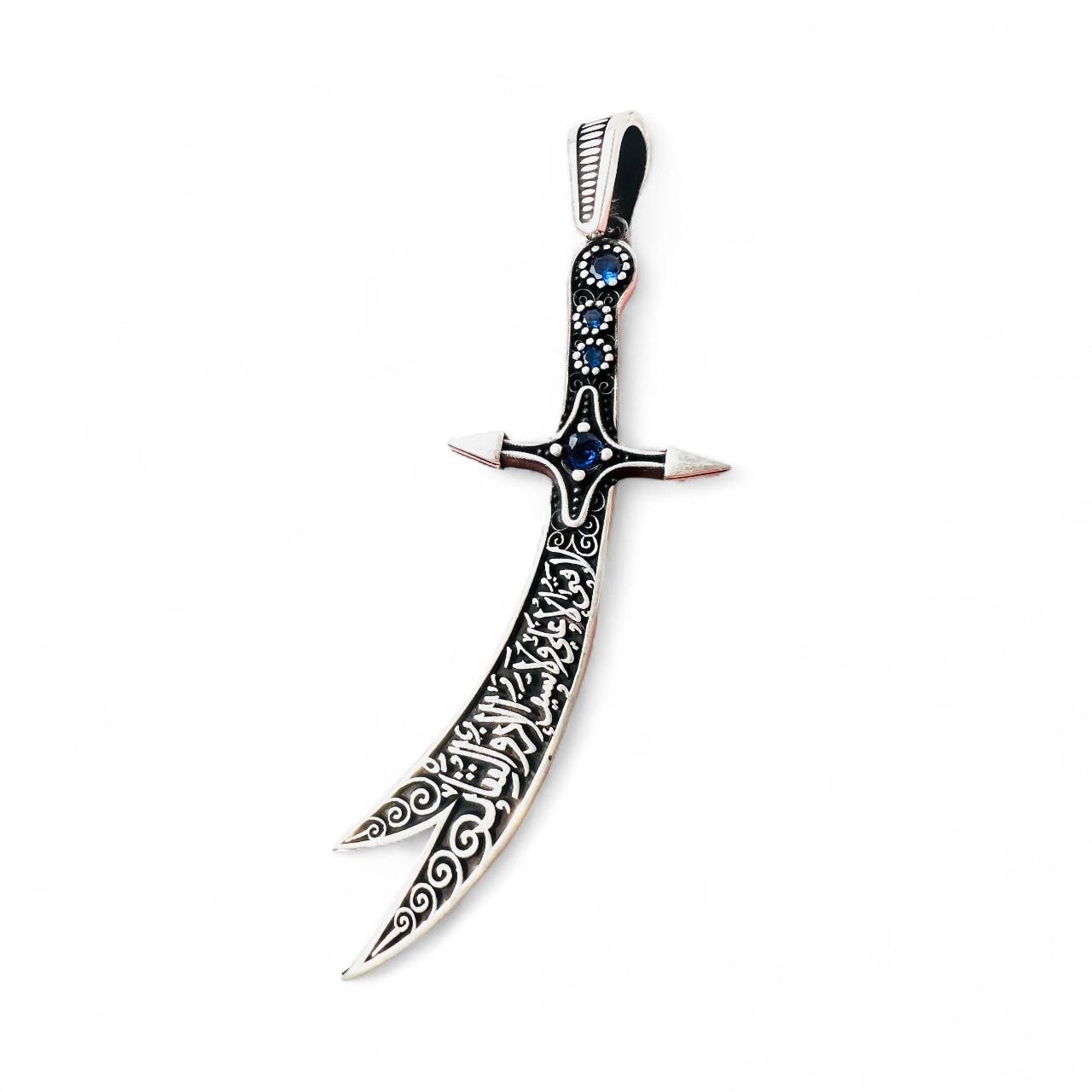 Shaped after the legendary Zulfiqar sword—a powerful symbol of bravery and justice—this pendant is a tribute to Hz. Ali, the Lion of Allah and the first Imam in Shia Islam. The detailed craftsmanship and polished silver finish make this piece a striking representation of faith and heritage.
