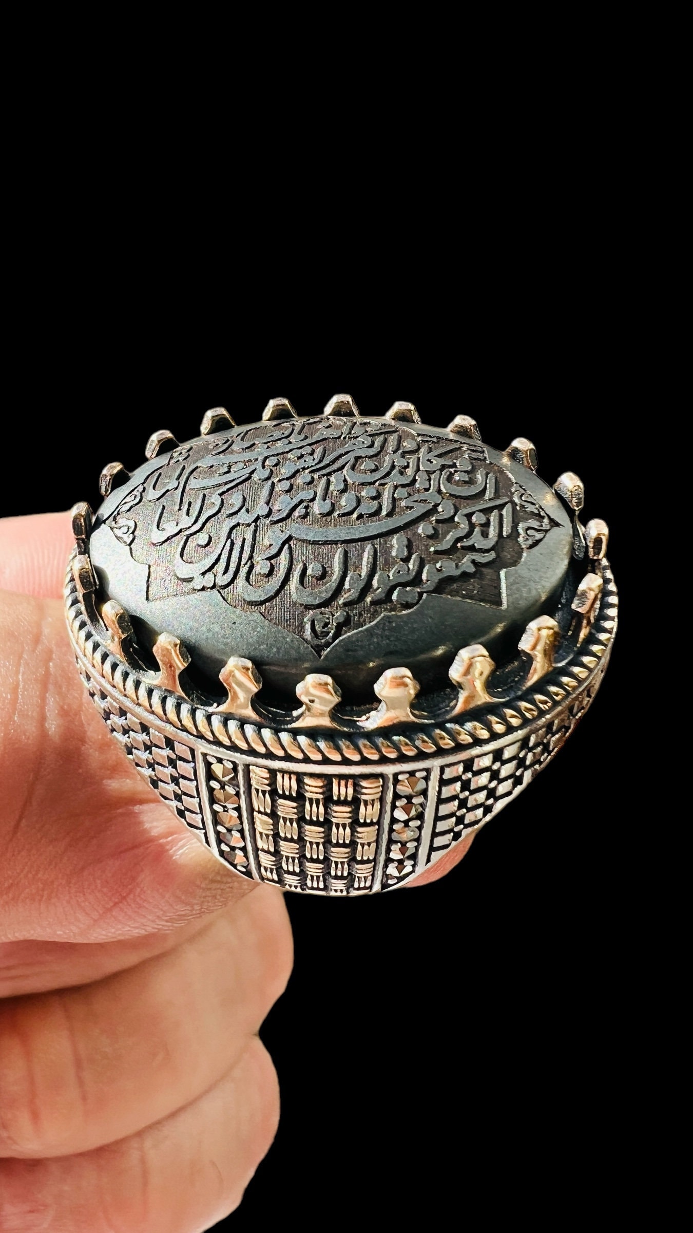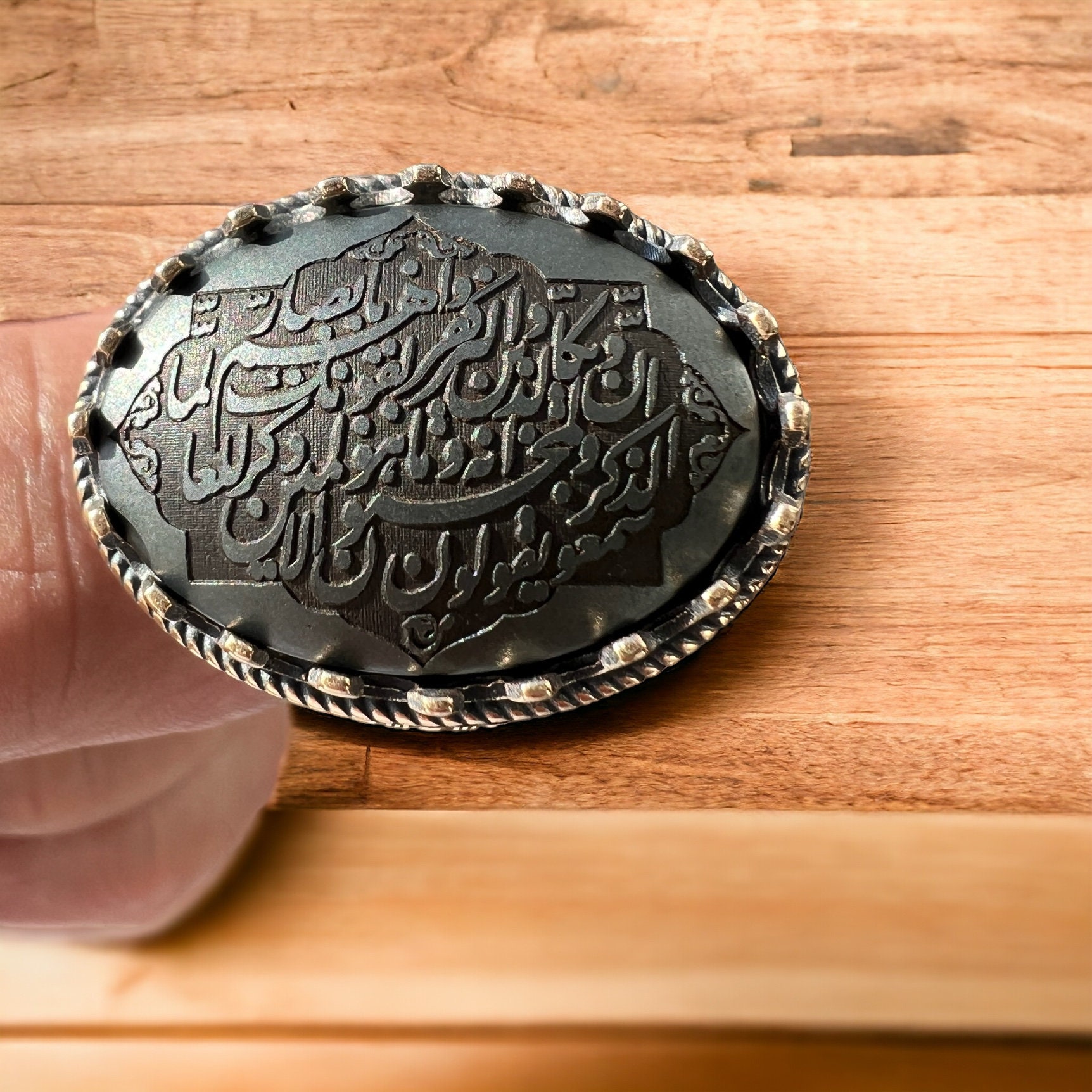 ARBIC ISLAMIC Hematite Hadid Sini engraved Quranic Al Ghalem Ayet al Kursi Silver Men Ring , Gemstone Ring, Vintage Style Gift for Him