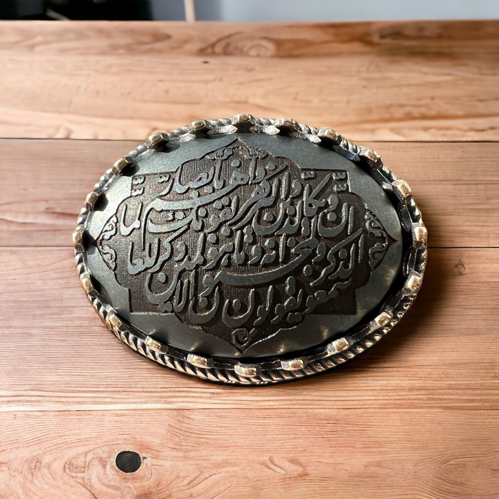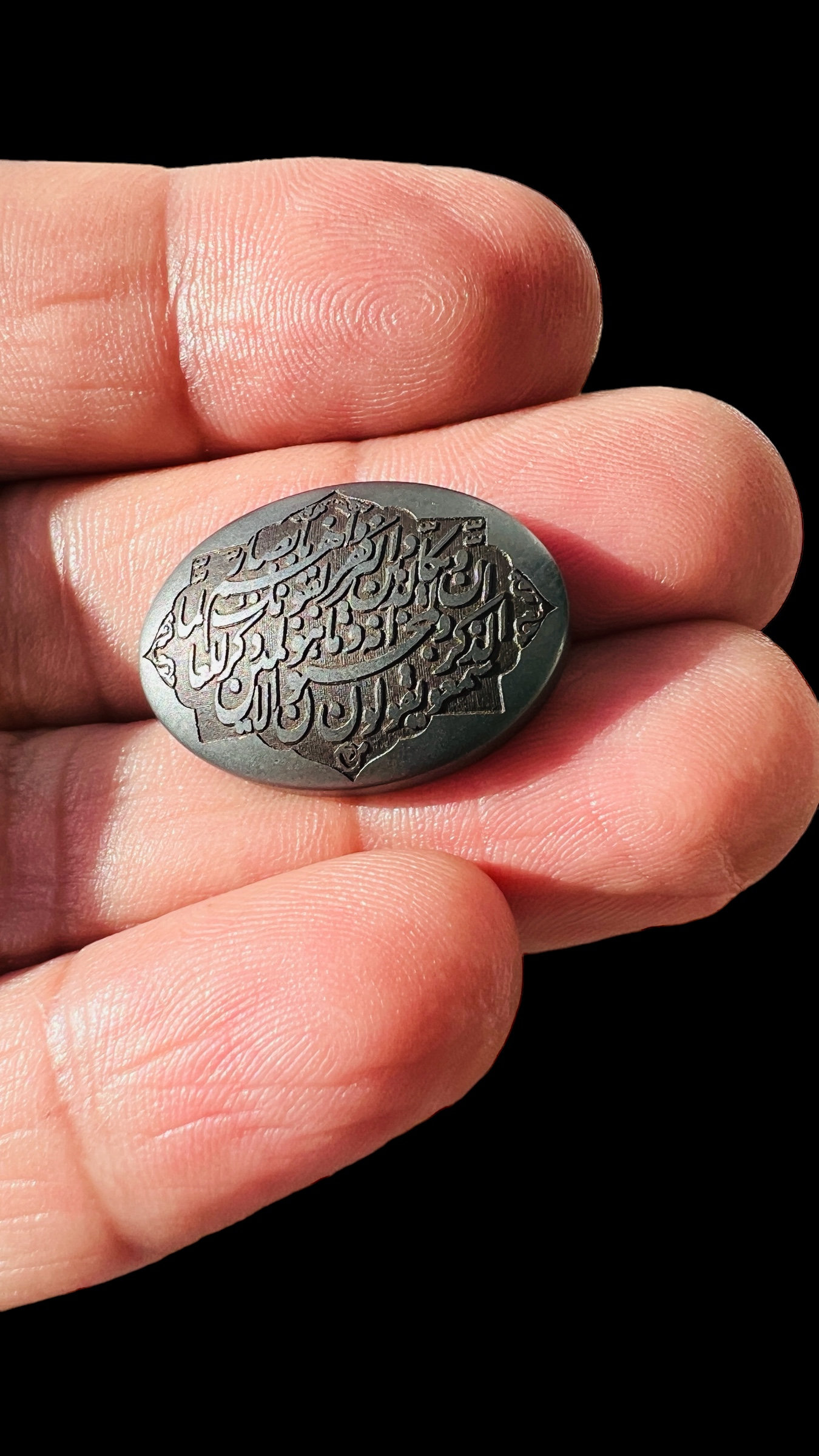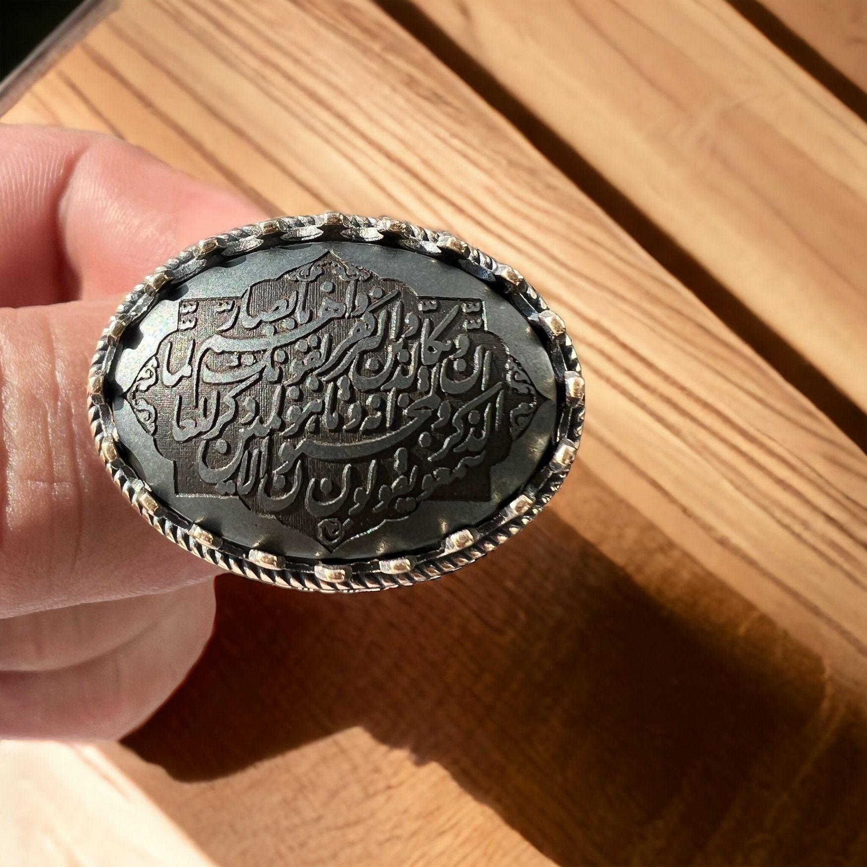 Experience the strength of sacred scripture with this powerful Islamic men’s ring, crafted from genuine Hadid Sini (natural hematite) and set in solid 925 sterling silver.