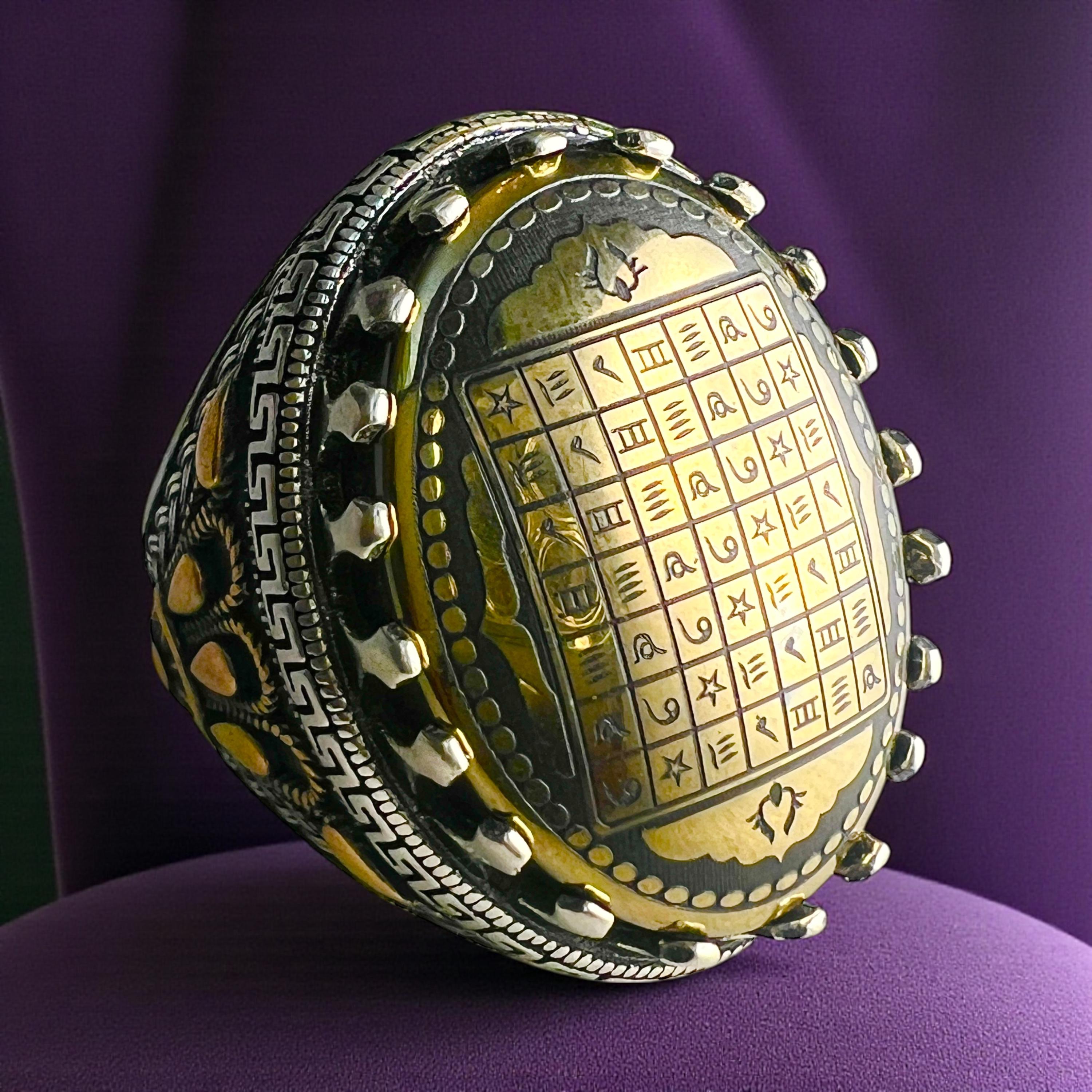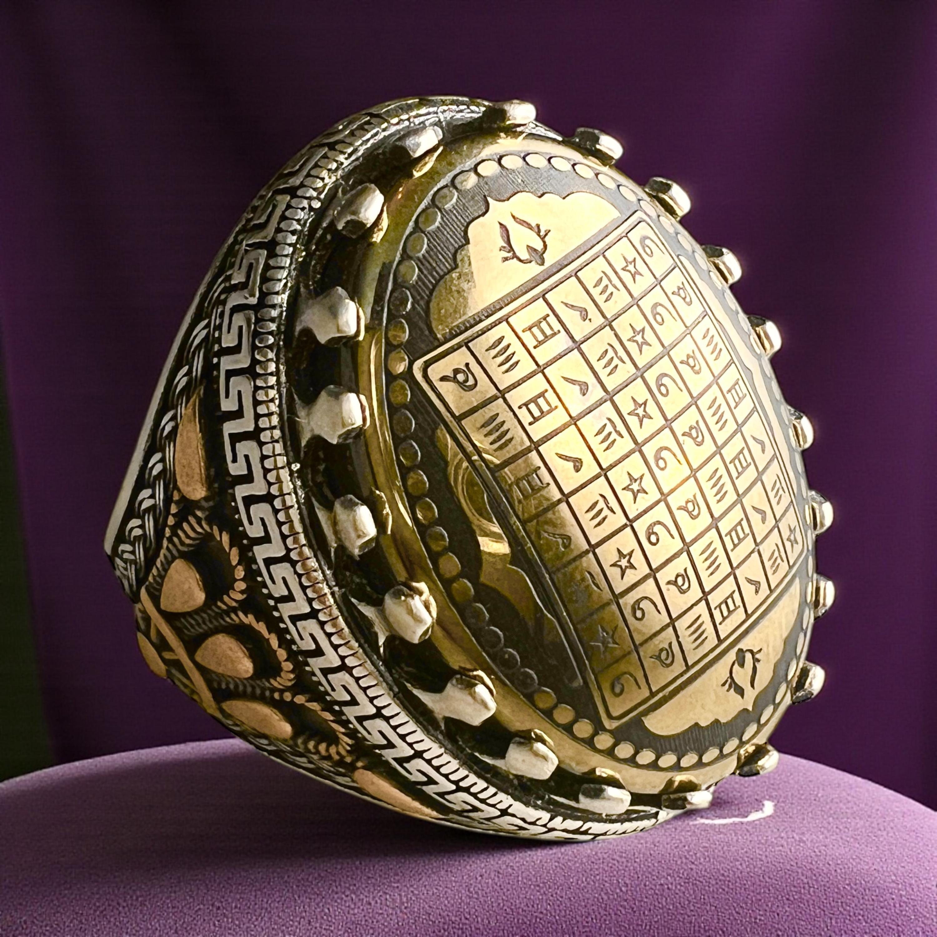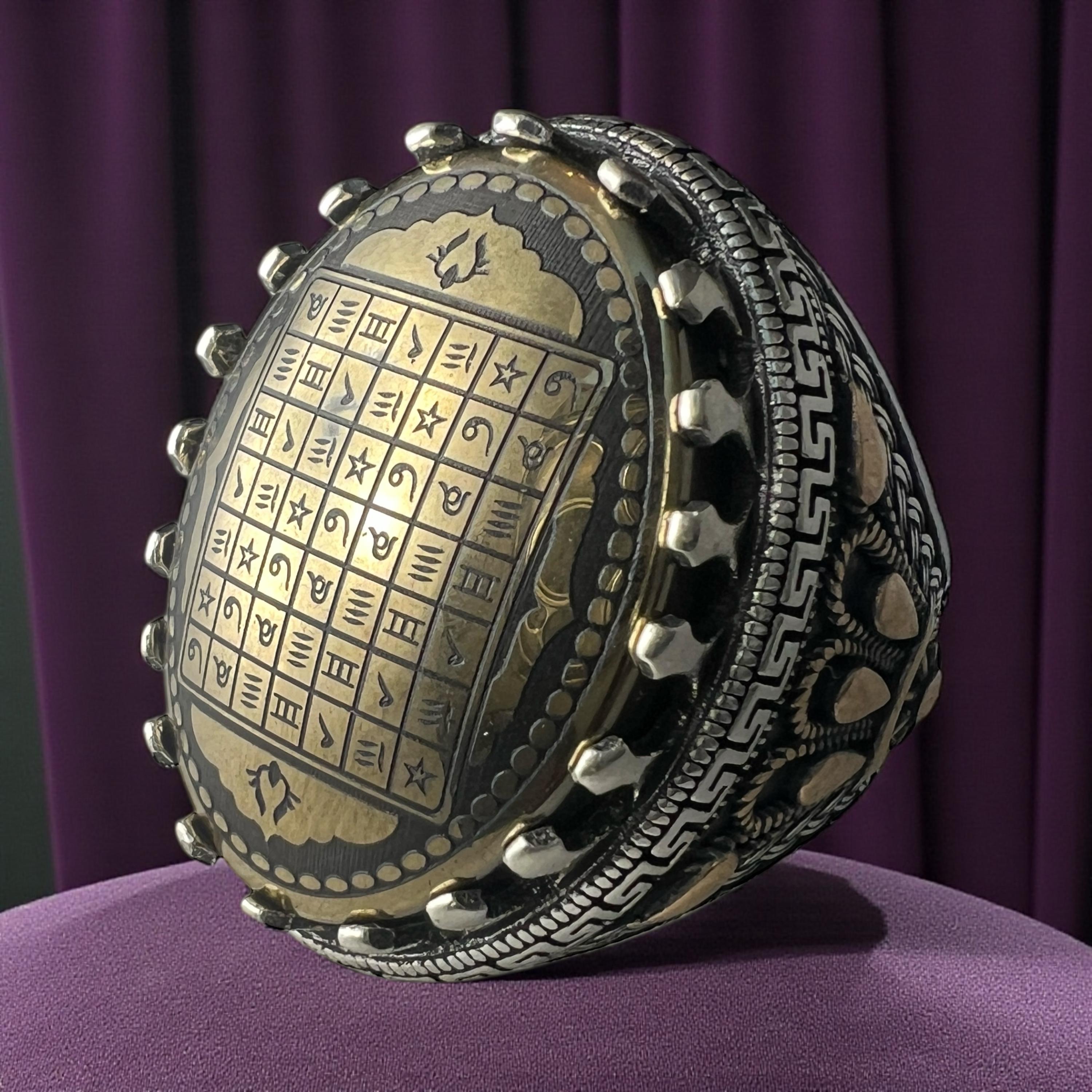 Engraved with the powerful 7 Sharf (سبعة شرفات)—a traditional Islamic hirz (protection charm)—this ring is known for its historical use in spiritual defense, repelling negative energy, and strengthening personal power.
