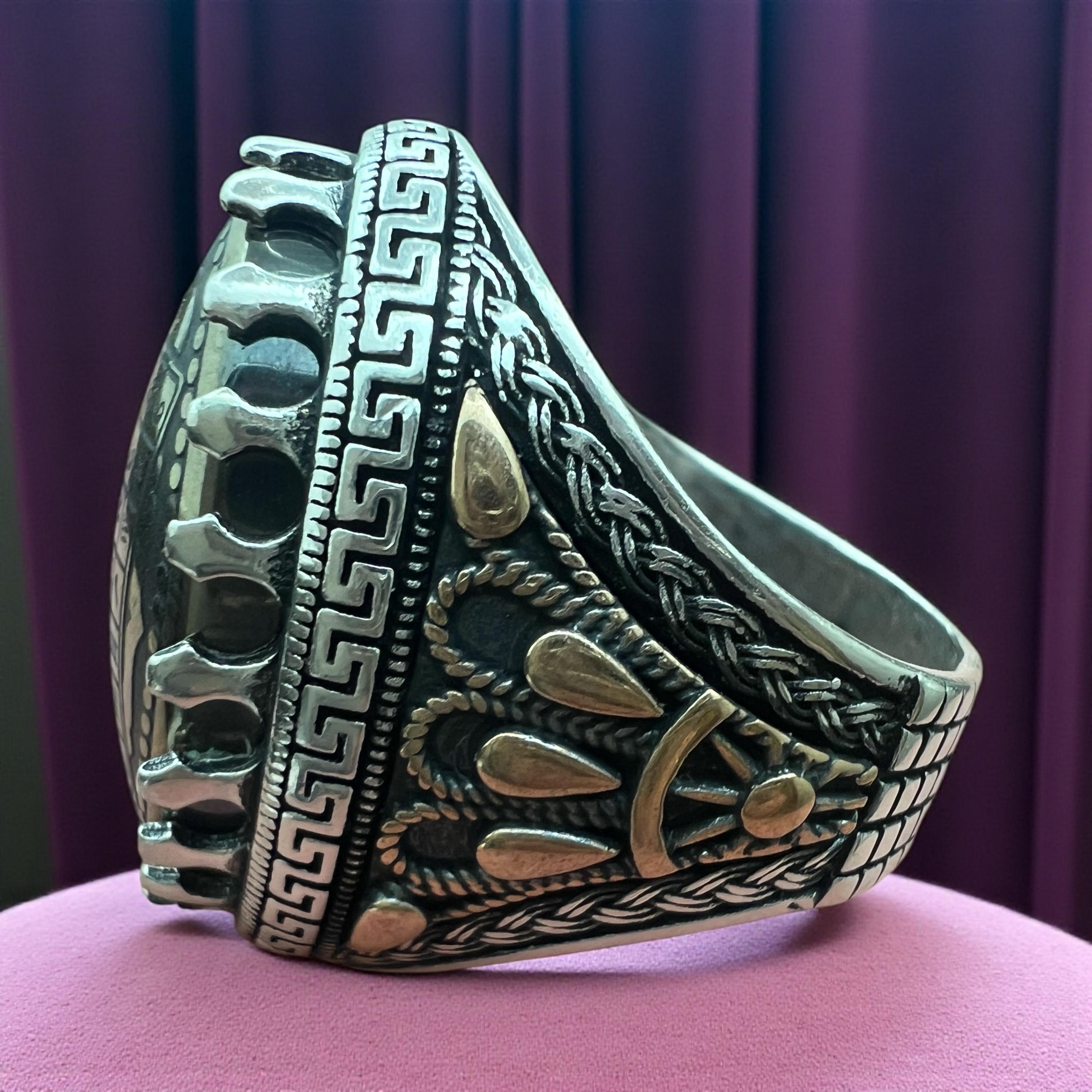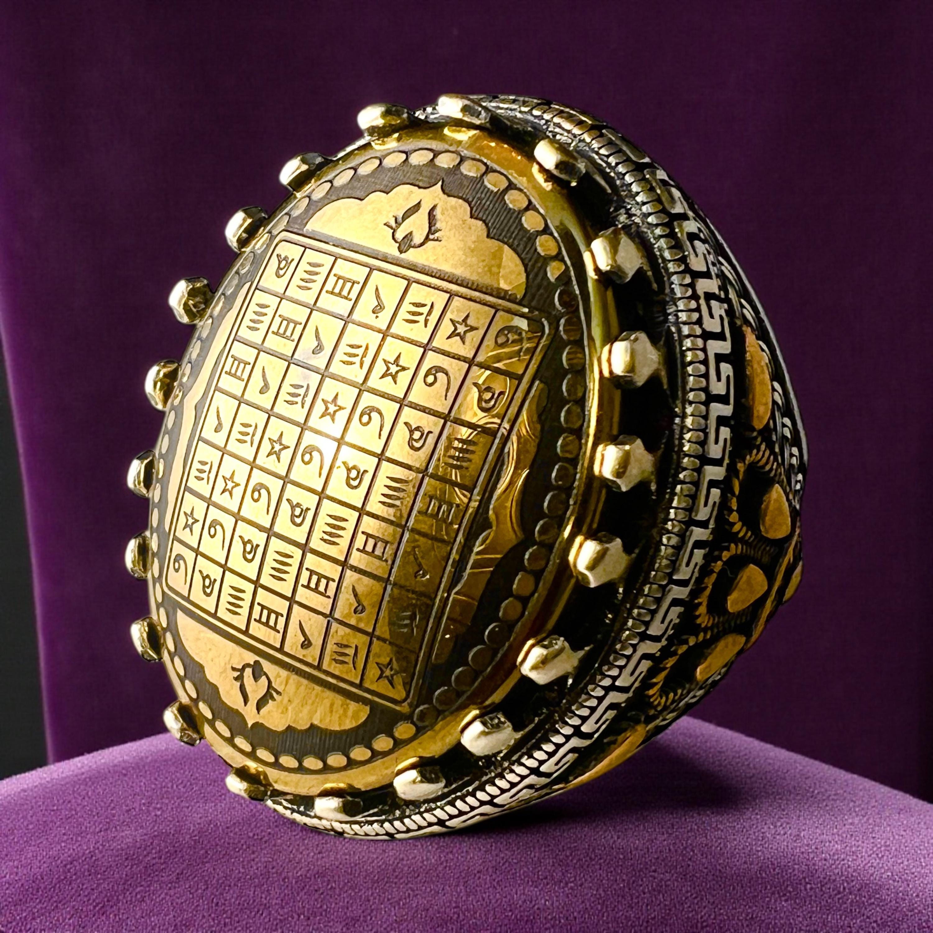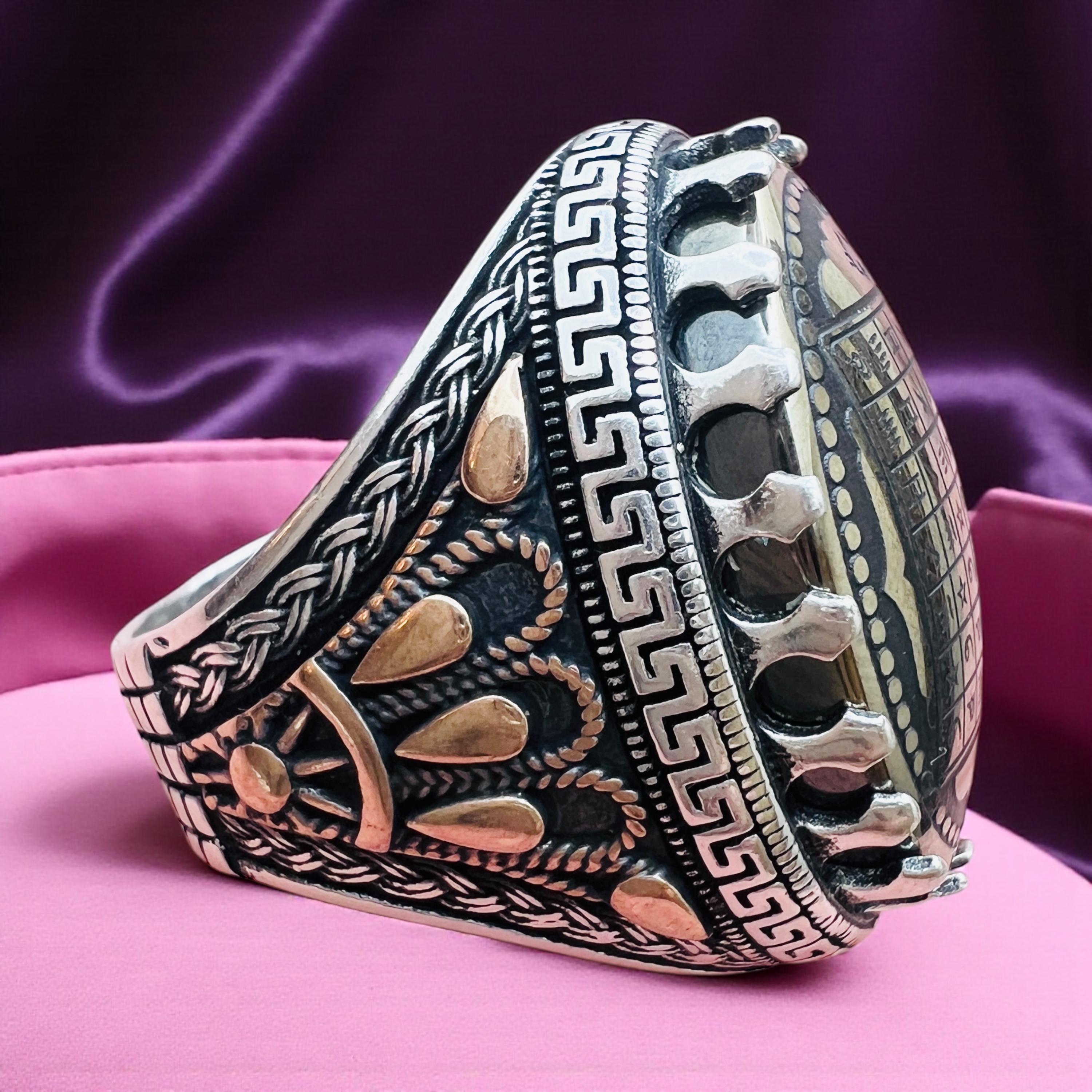 Engraved with the powerful 7 Sharf (سبعة شرفات)—a traditional Islamic hirz (protection charm)—this ring is known for its historical use in spiritual defense, repelling negative energy, and strengthening personal power.