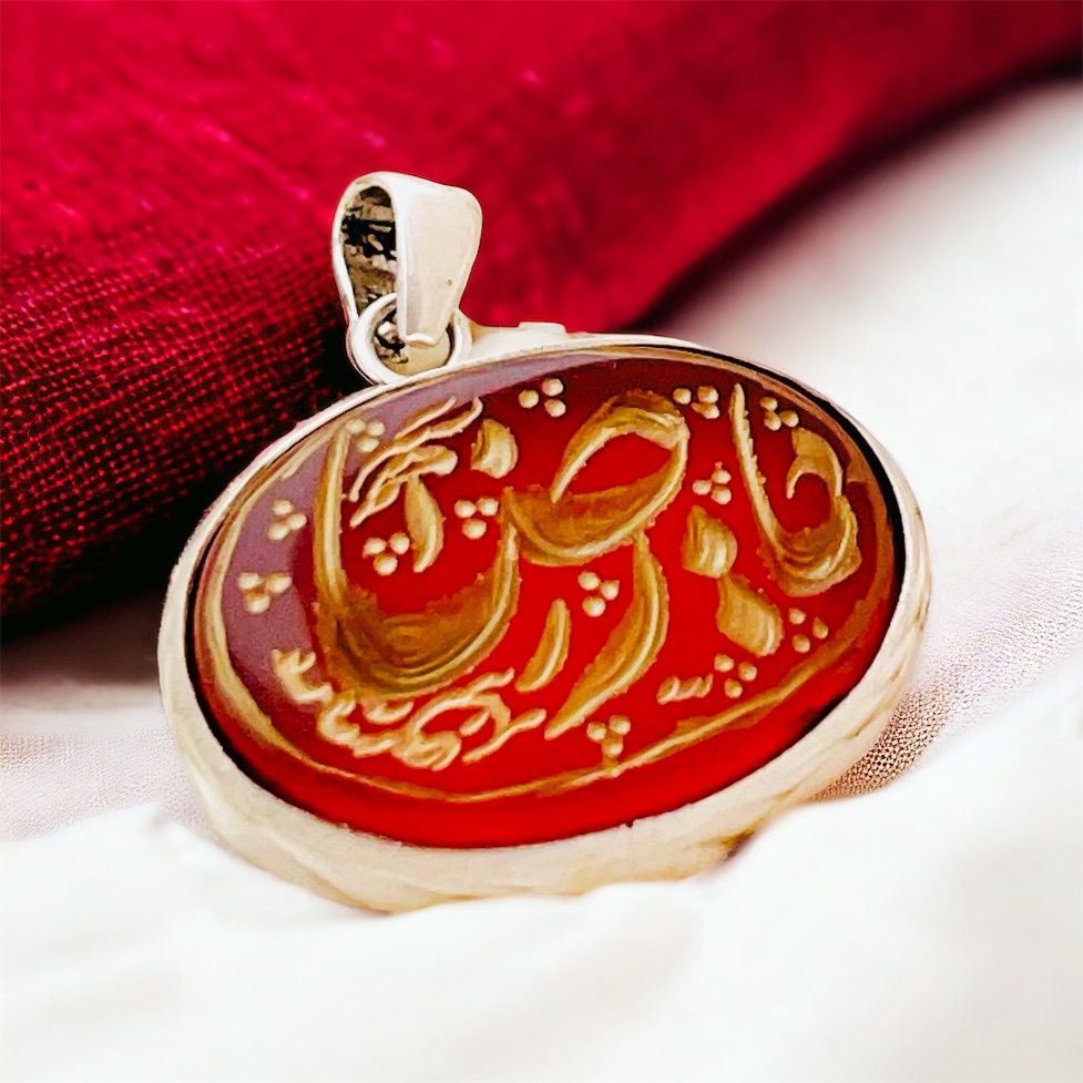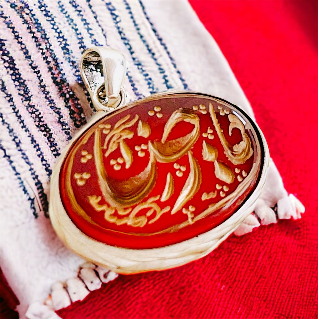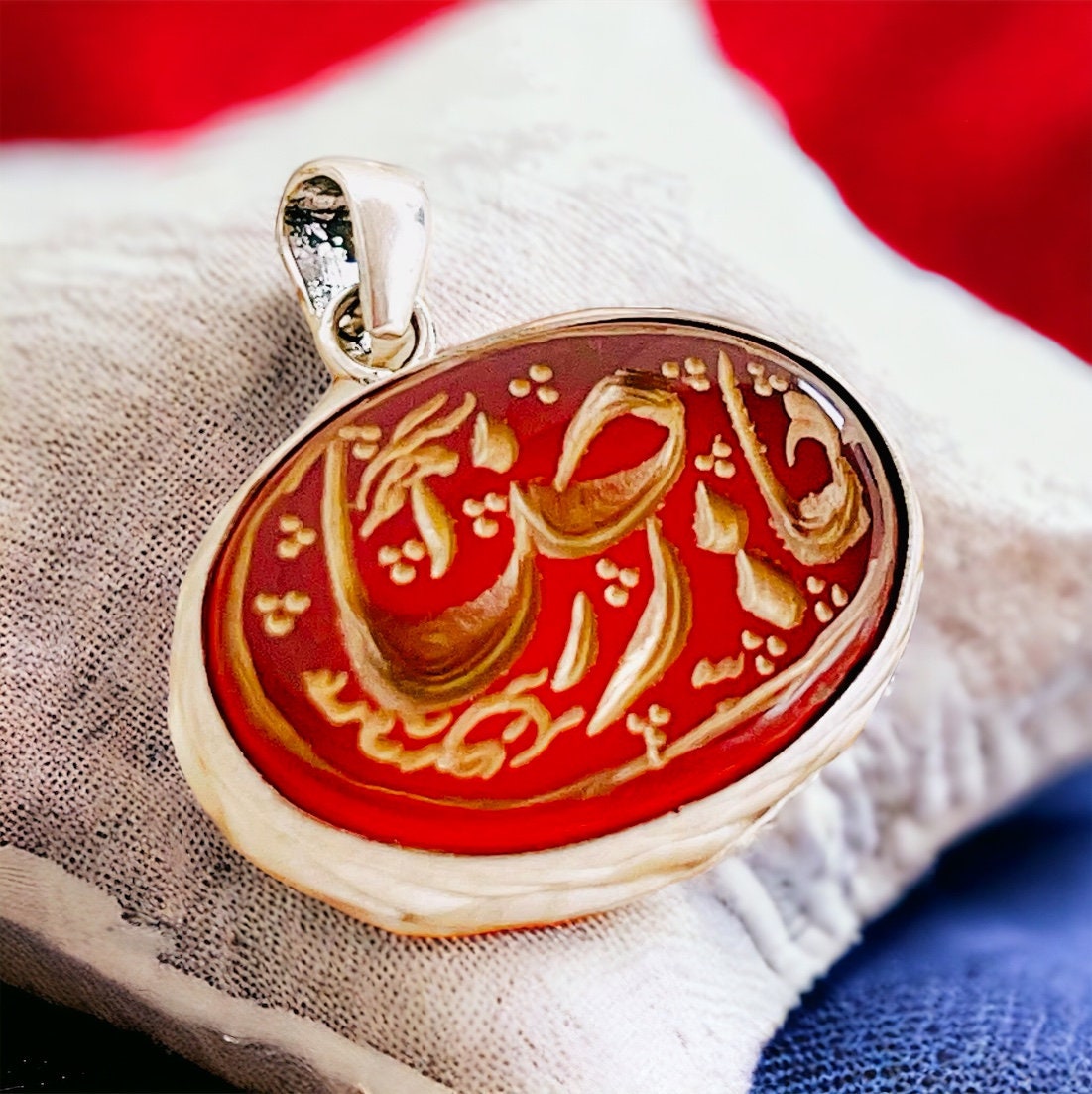 Shia Ahlulbeyt 14 Infallibles Hand carving Ya Reza,Imam Reza,Imam Riza,925 Silver Yemeni Akik Pendant
