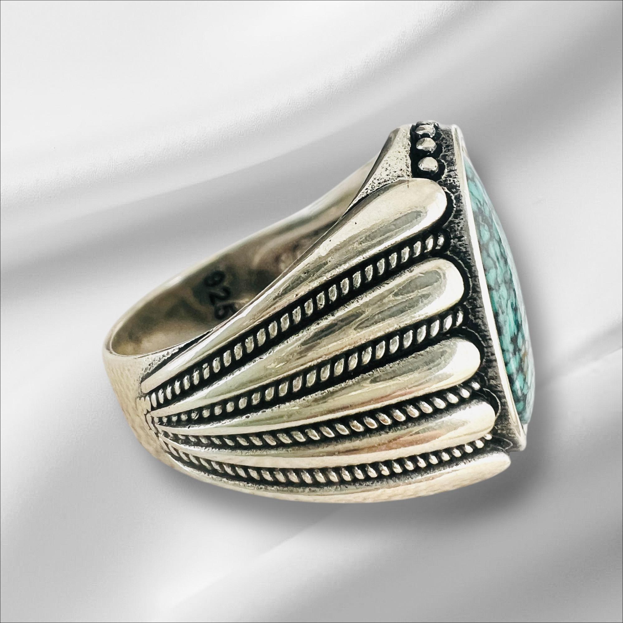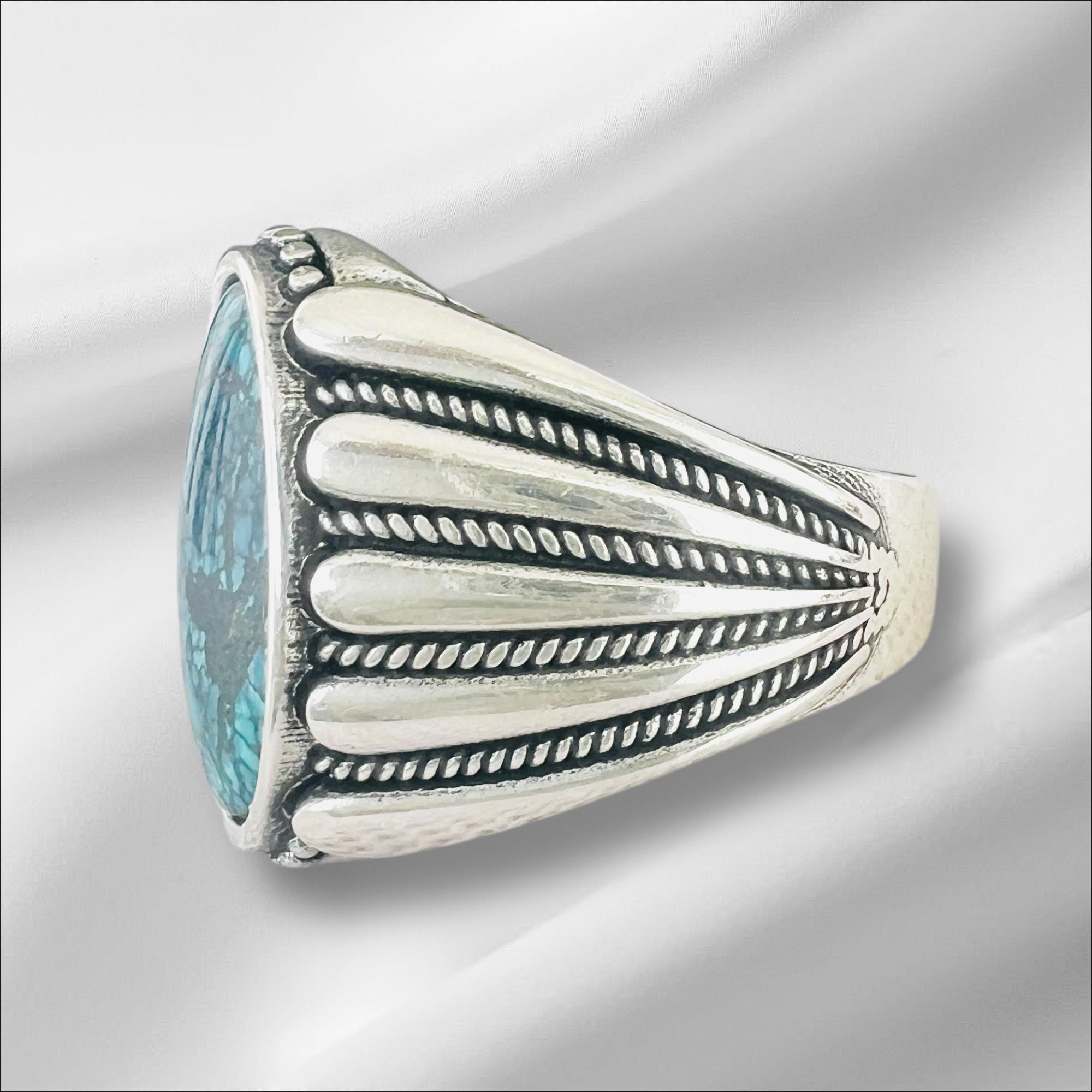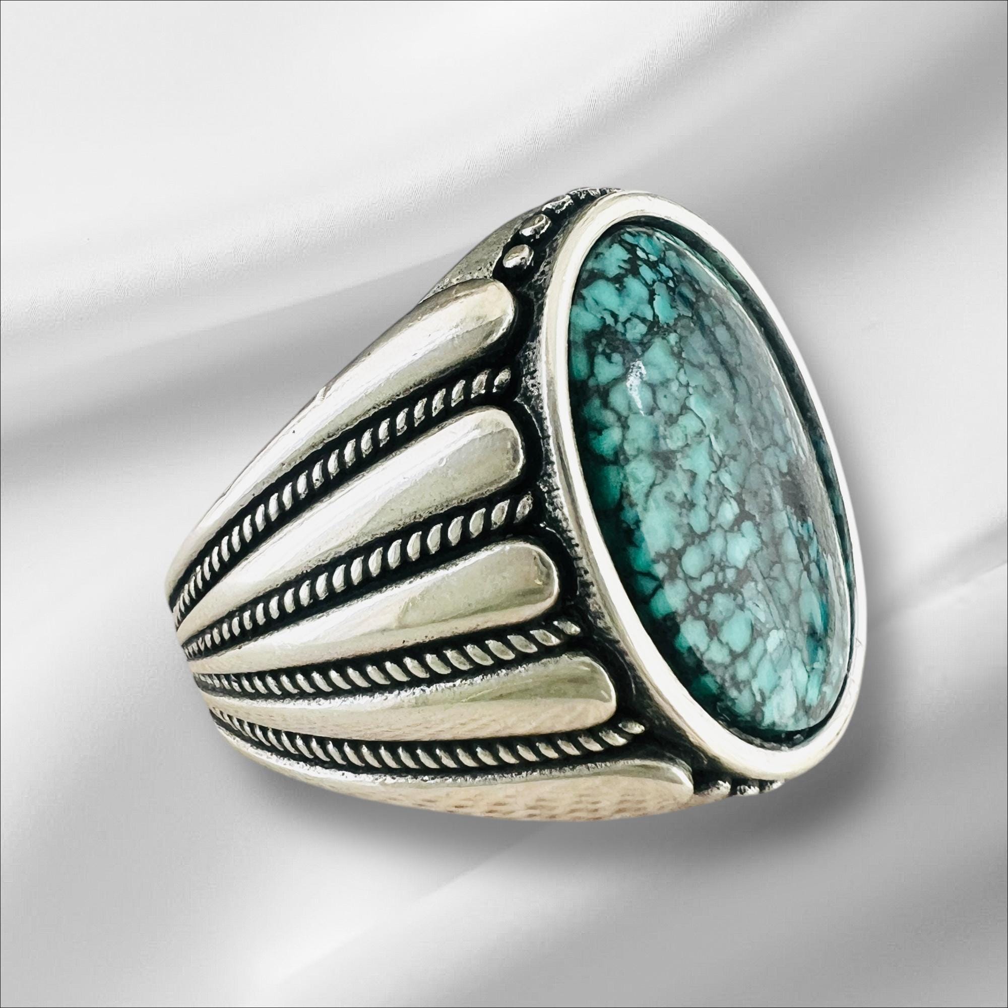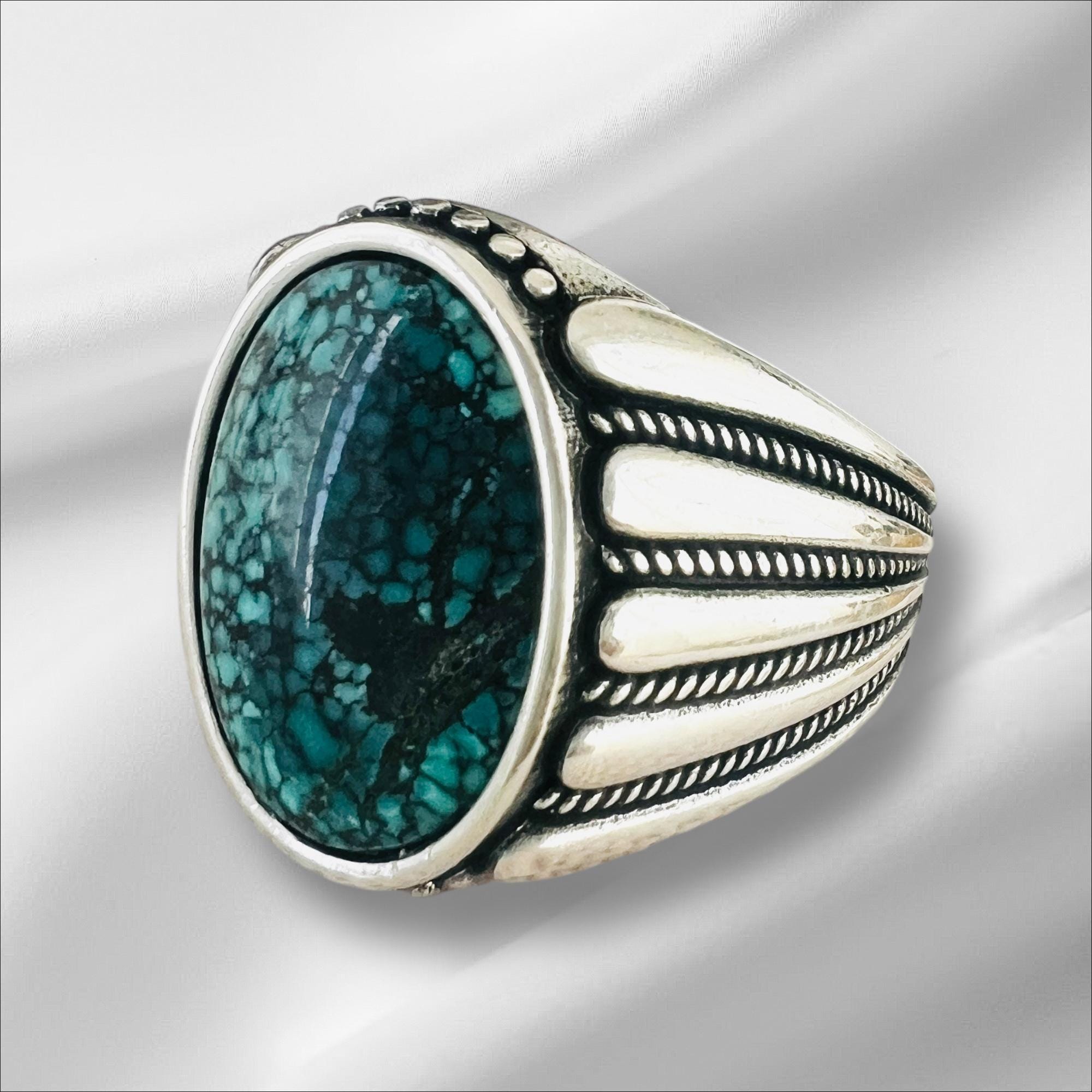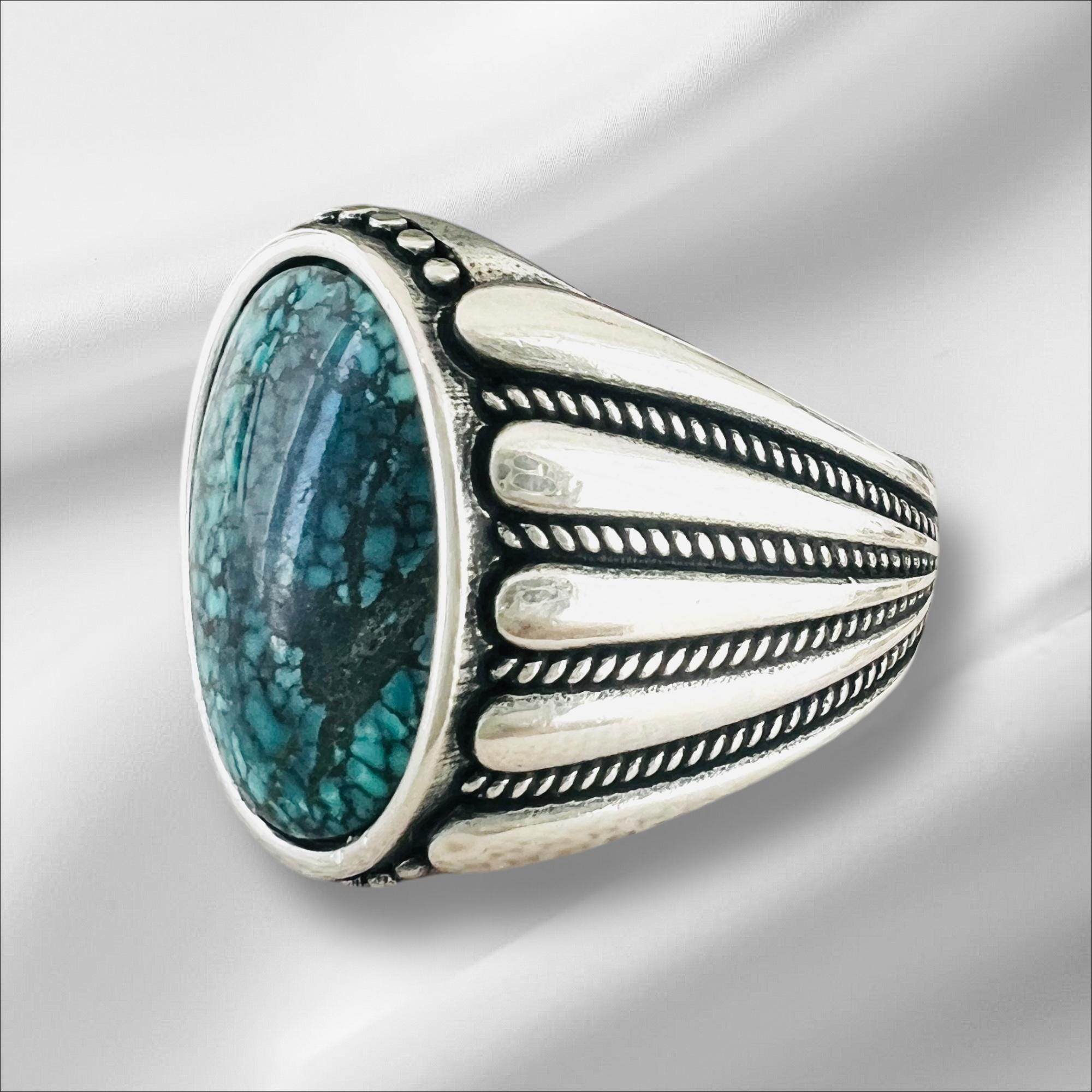 Turquoise has been treasured for centuries as a stone of protection, wisdom, and good fortune. Its deep blue-green hues pair beautifully with the shine of sterling silver, creating a meaningful piece suitable for both men and women.