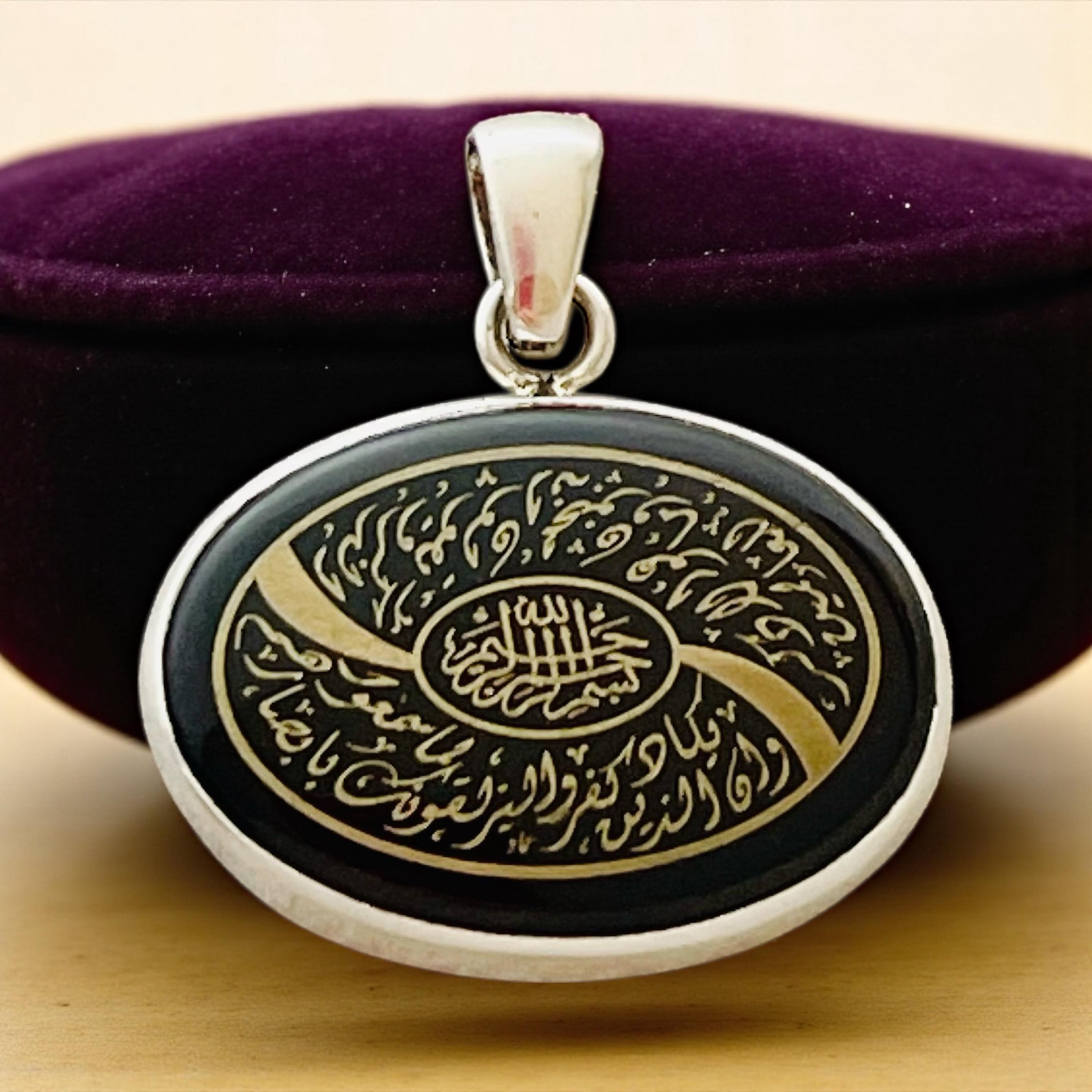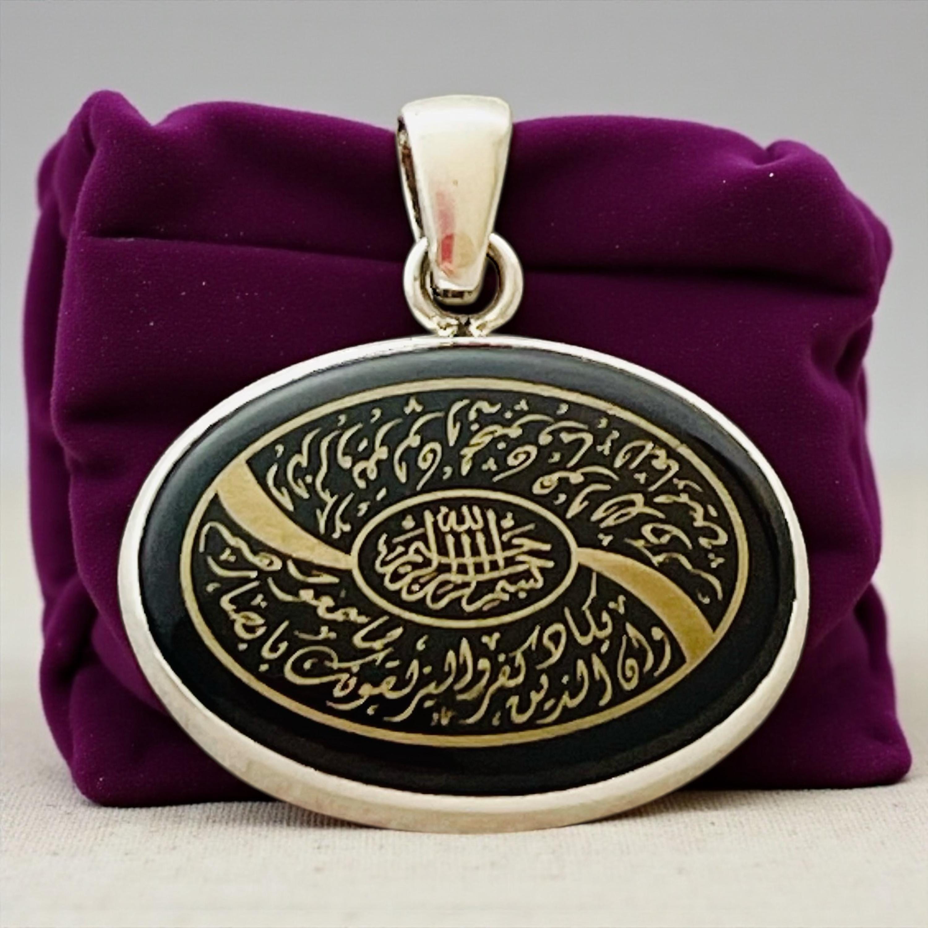 Experience the perfect blend of tradition and spirituality with this exquisite 925 sterling silver pendant, featuring a natural dark Yemeni agate (Aqeeq) stone crafted in the authentic Van Yekad style.