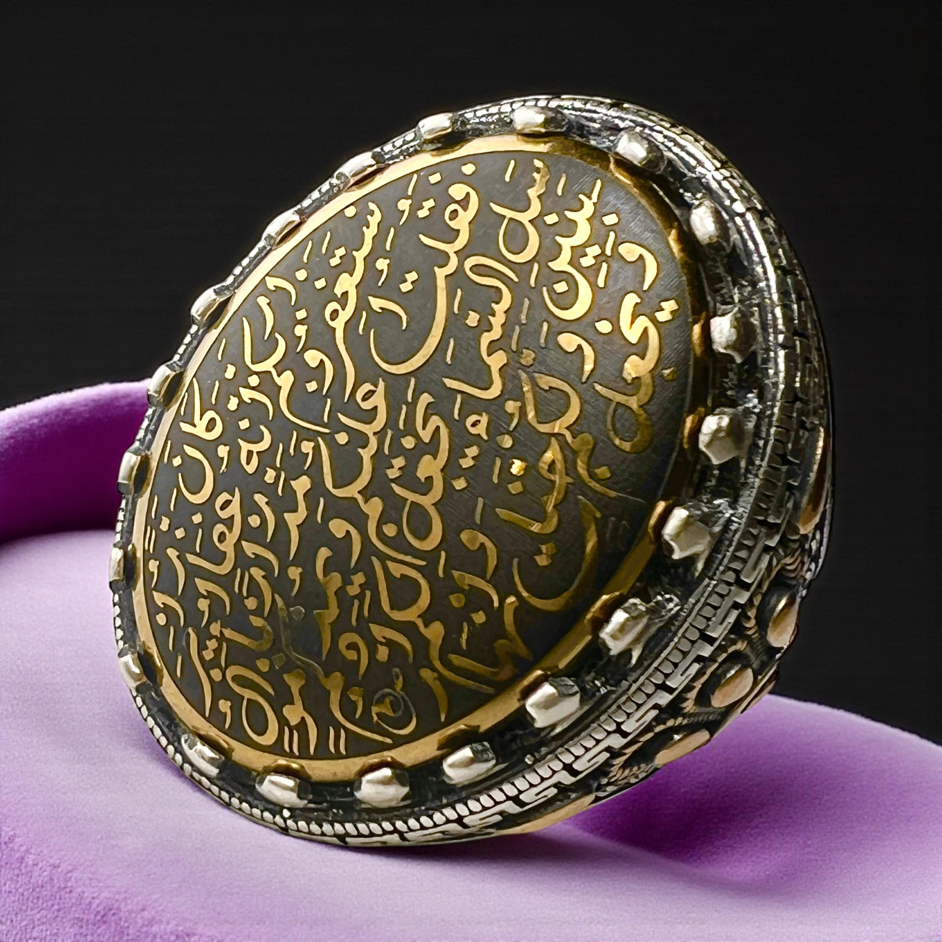 Hadid Sini is known as a stone of power and protection, while the verse from Surah Hud calls for repentance and promises divine strength — making this ring both a spiritual talisman and a symbol of faith.