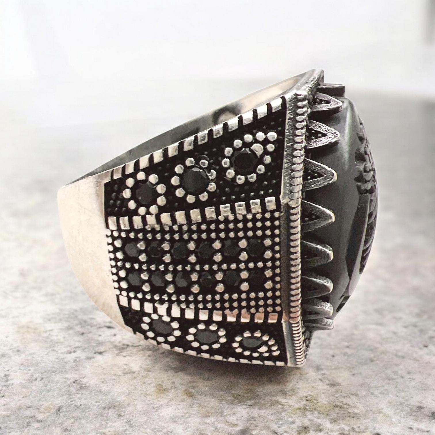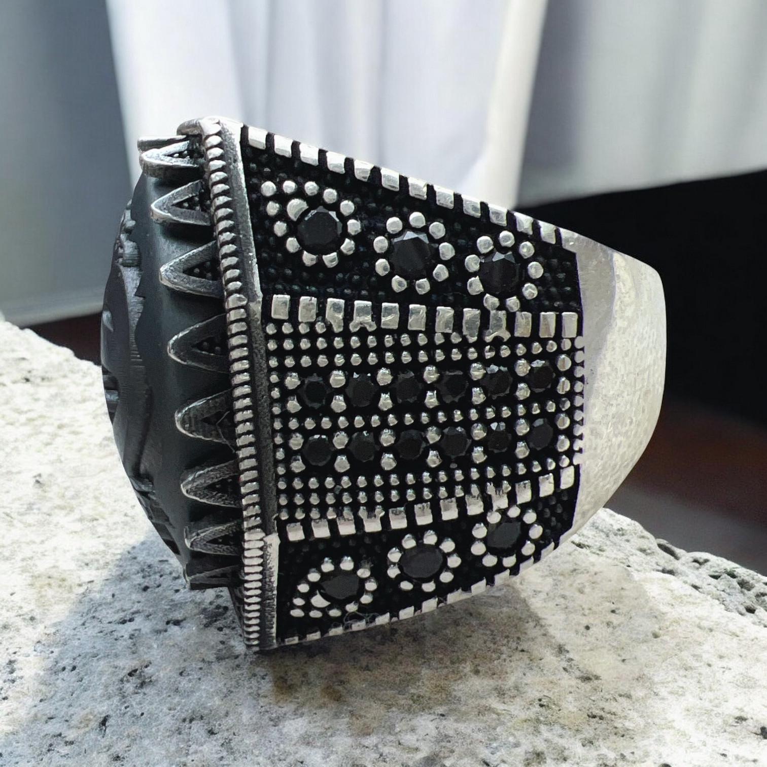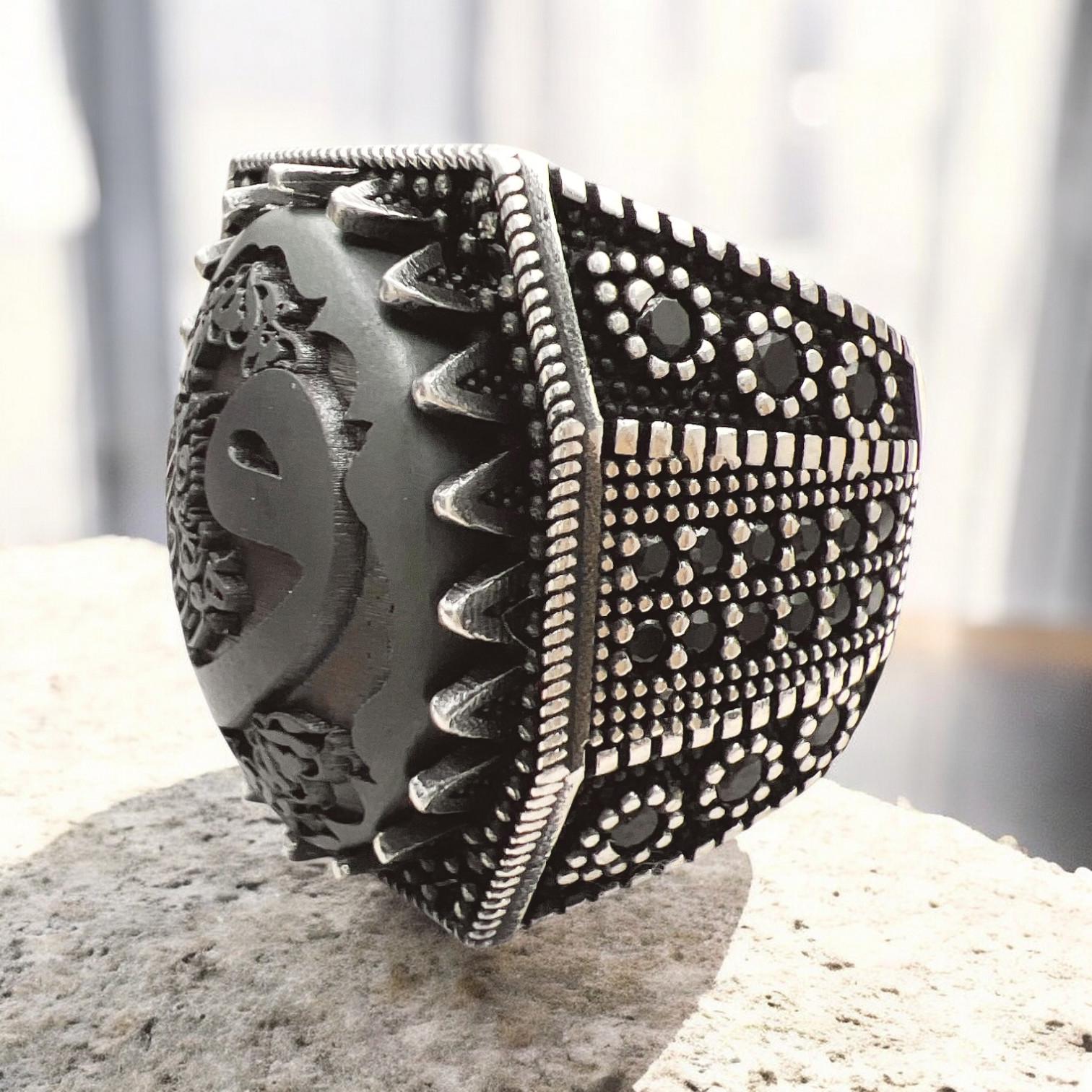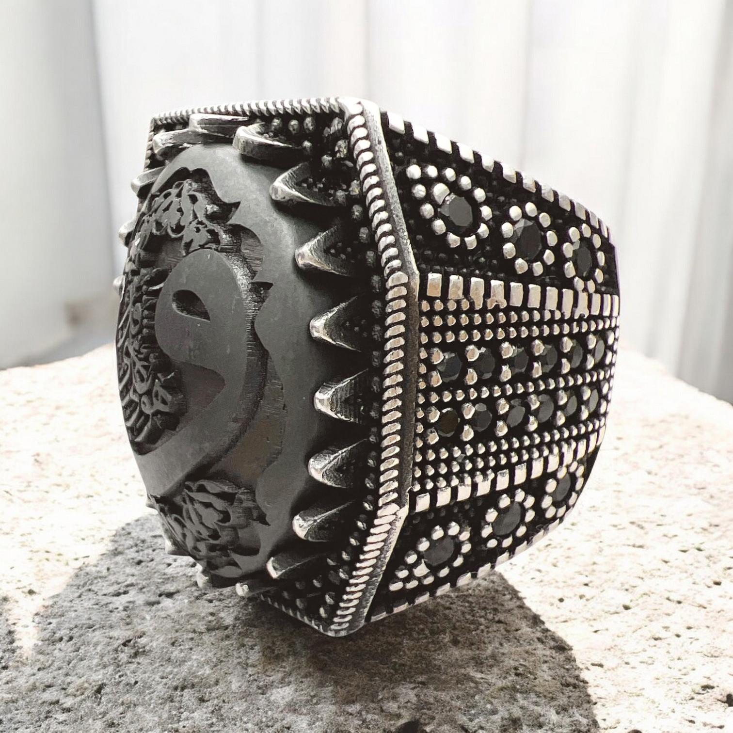 Handmade by skilled artisans, this ring features a polished 15×20 mm stone set in a durable solid silver bezel. The detailed Arabic engraving adds meaning, elegance, and a timeless spiritual touch.